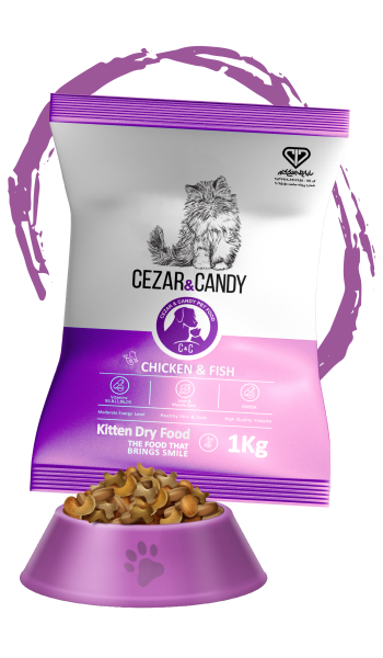 غذا خشک بچه گربه سزار و کندی با طعم مرغ و ماهی1 کیلویی
