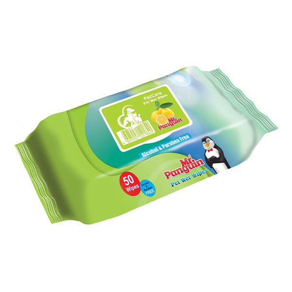 دستمال مرطوب پاکتی مستر پنگوئن 50 برگی (رایحه لیمو)